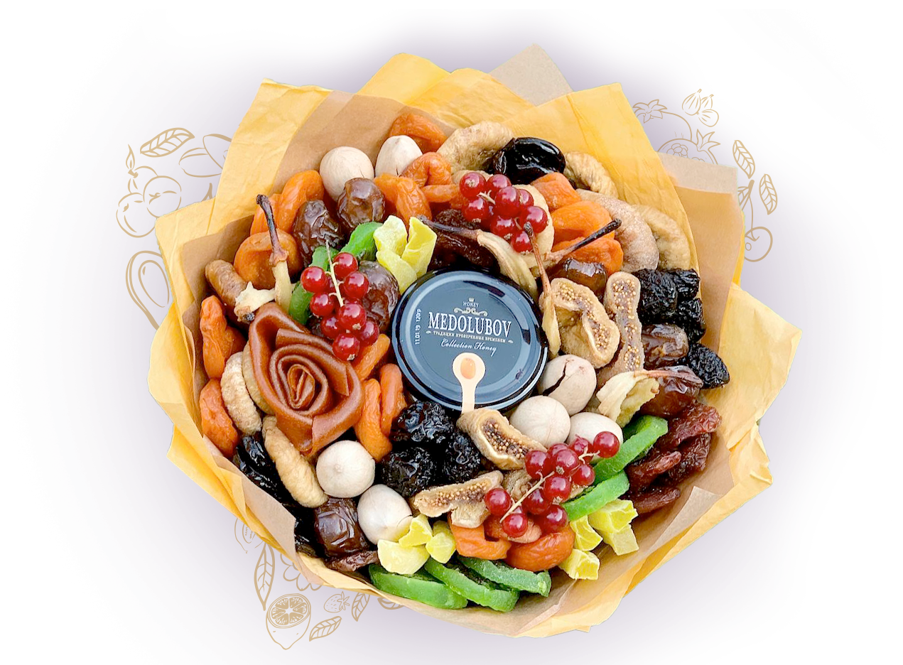 Букеты из сухофруктов хранятся очень долго, у нас был опыт хранения месяц.